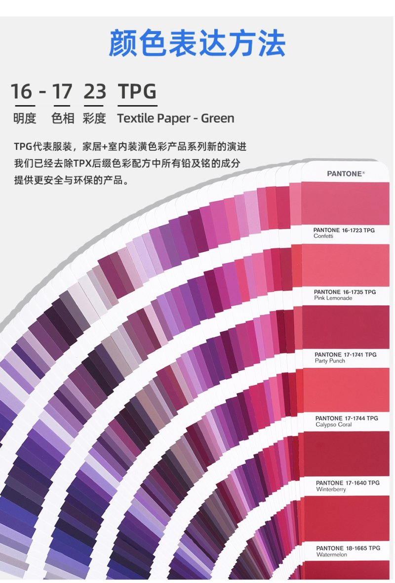 • 所有用于硬质表面的TPG 颜色均与我们的 FHI 纺织棉系统颜色相匹配,适用于纺织品和软质产品。