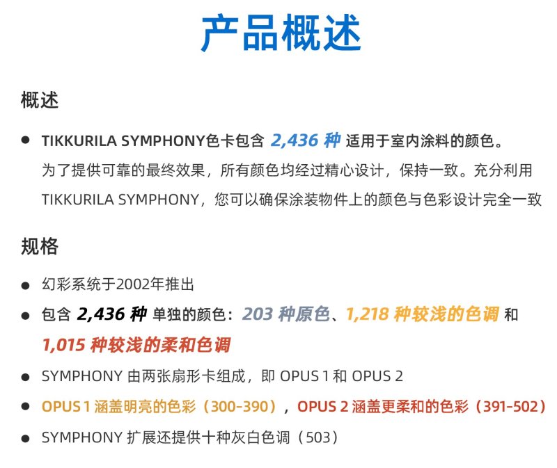 Tikkurila Symphony色卡包含 2,436 种适用于室内涂料的颜色