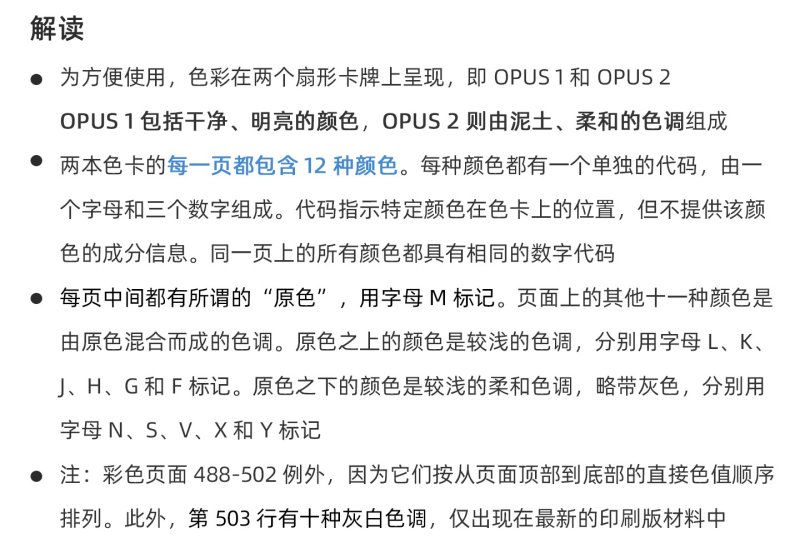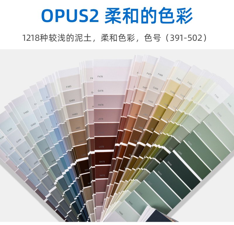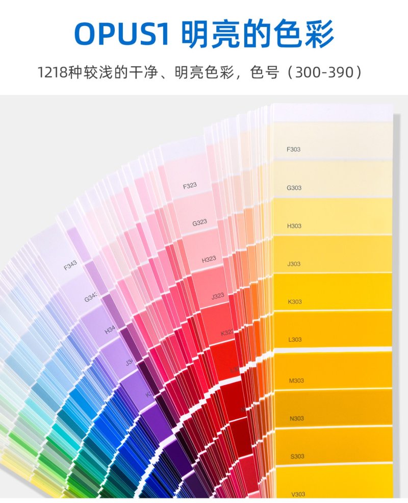 OPUS 1 涵盖明亮的色彩(300–390),OPUS 2 涵盖更柔和的色彩(391–502)。