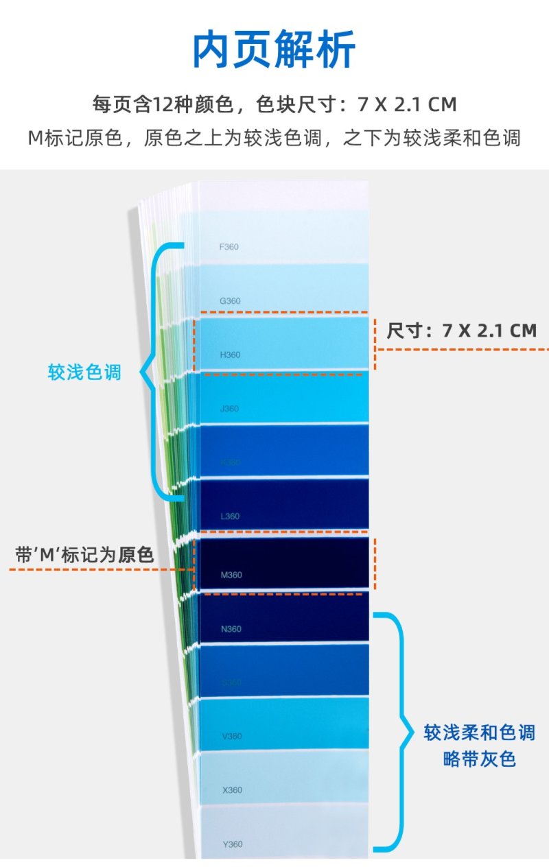 它包含 2,436 种单独的颜色:203 种原色、1,218 种较浅的色调和 1,015 种较浅的柔和色调。