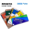 整本色卡的外观尺寸为: 8*18.5cm,每个颜色的尺寸为: 8*5cm,每种颜色打孔直径为:1.9cm以便于直观的对比颜色。分别展现在一本包含白色和天然牛皮纸版上。