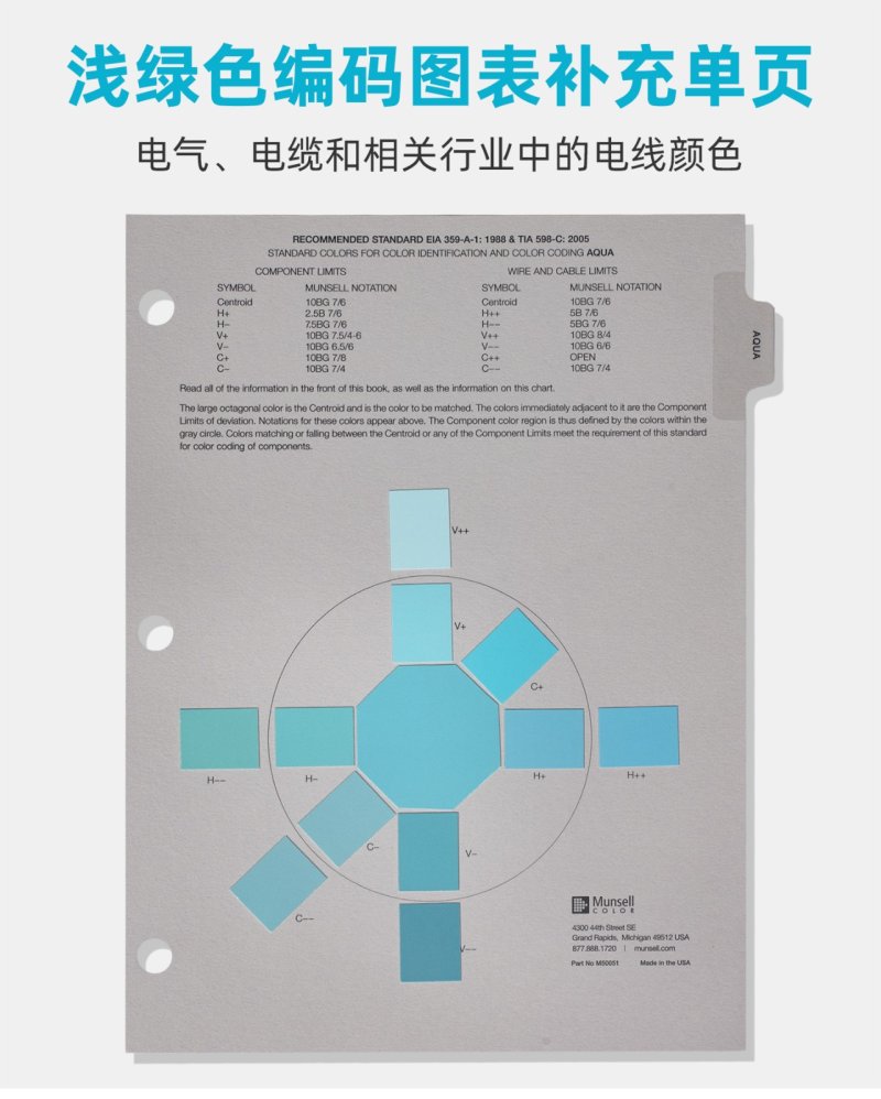 MUNSELL EIA-TIA 598-A AQUA COLOR CODING CHART浅绿色编码表补充单页
