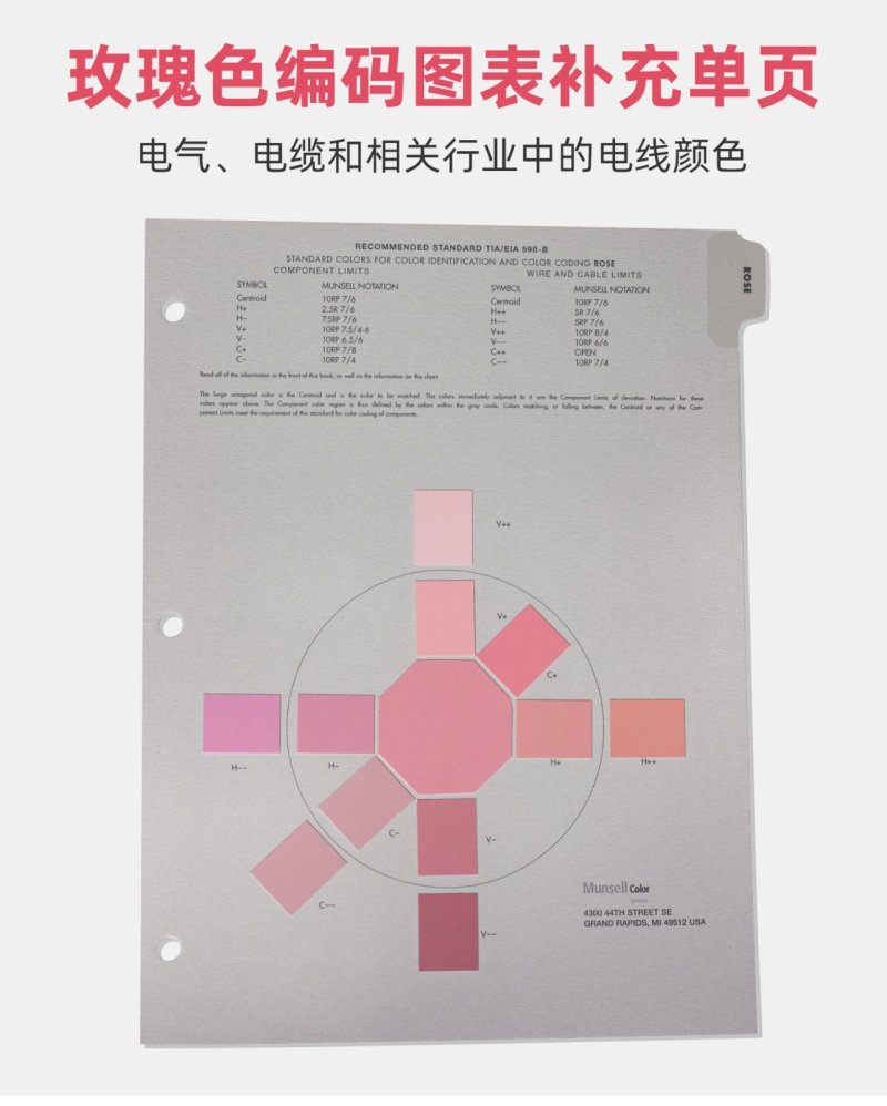 Munsell EIA-TIA 598-A Rose Color Coding Chart 玫瑰色编码图表补充单页