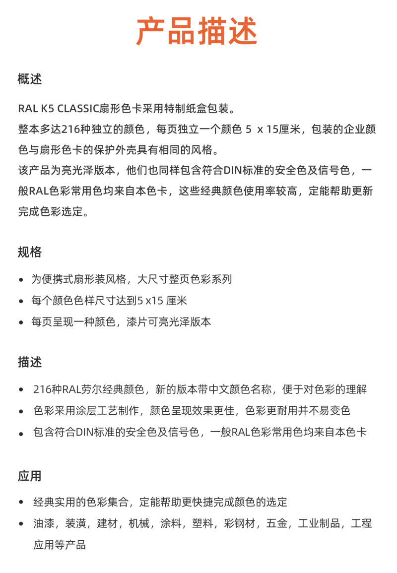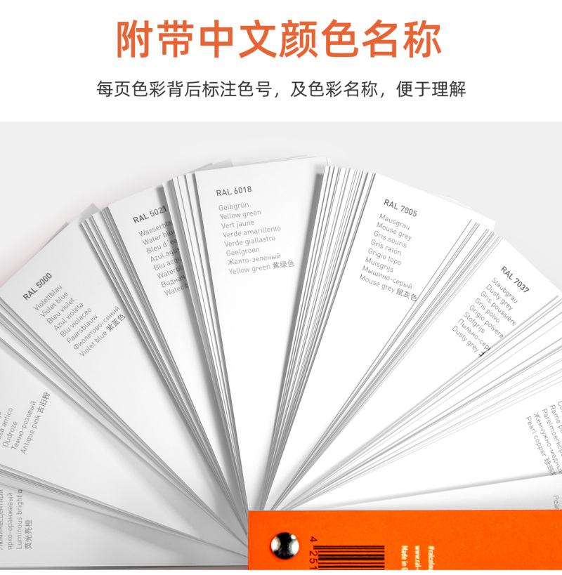 • 包含符合DIN标准的安全色及信号色,一般RAL色彩常用色均来自本色卡
